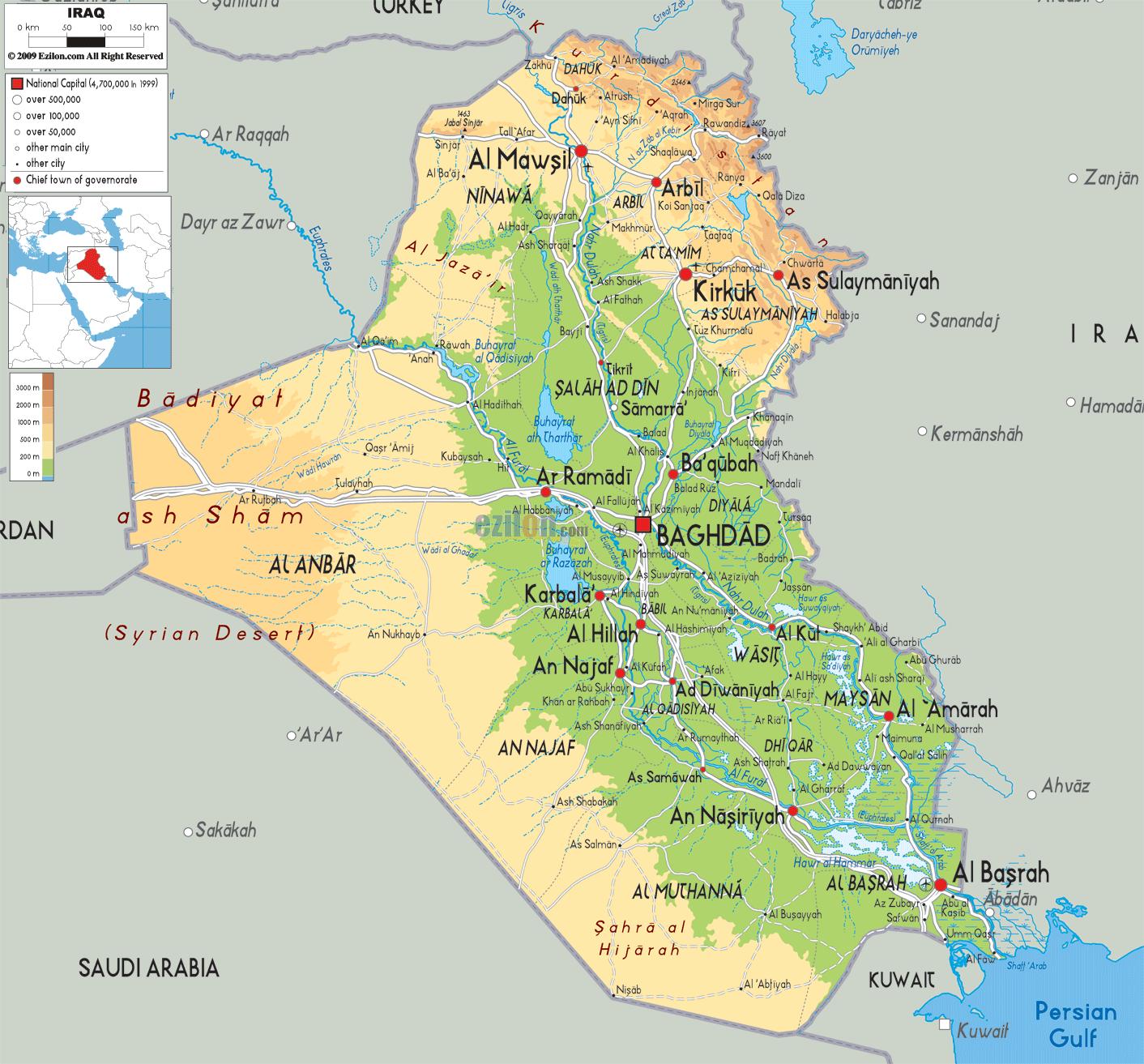 Map of Iraq geography. Iraq geography map (Western Asia - Asia) to print. Iraq geography map (Western Asia - Asia) to download.